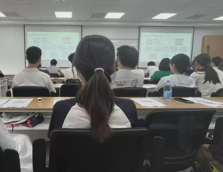 2025年7月20日,北京市海淀区国际财经中心。在一家教培机构的大学衔接班试听课上九鼎配资,来听课的除了准大学生,还有不少学生家长。(南方周末记者杜寒三/图)